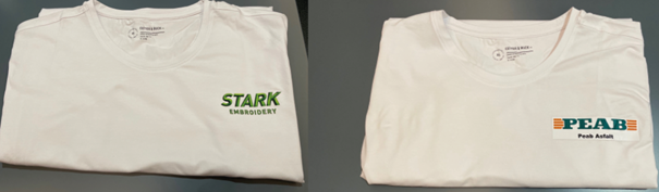 För bästa resultat ska du välja vår Stark Heat Transfer, eventuellt med Blocker-tillägg (om du exempelvis ska trycka en ljus logga över en mörk), så att inte det gamla trycket syns igenom. Vi rekommenderar inte att du använder Flex Heat Transfer över ett gammalt Stark-tryck, då detta kommer att ”lysa” igenom. Det nya trycket ska också vara lite större än det gamla för att kunna täcka motivet ordentligt – med för snäva marginaler är det lätt hänt att det gamla trycket syns vid kanten om du inte lyckas applicera det nya trycket exakt.