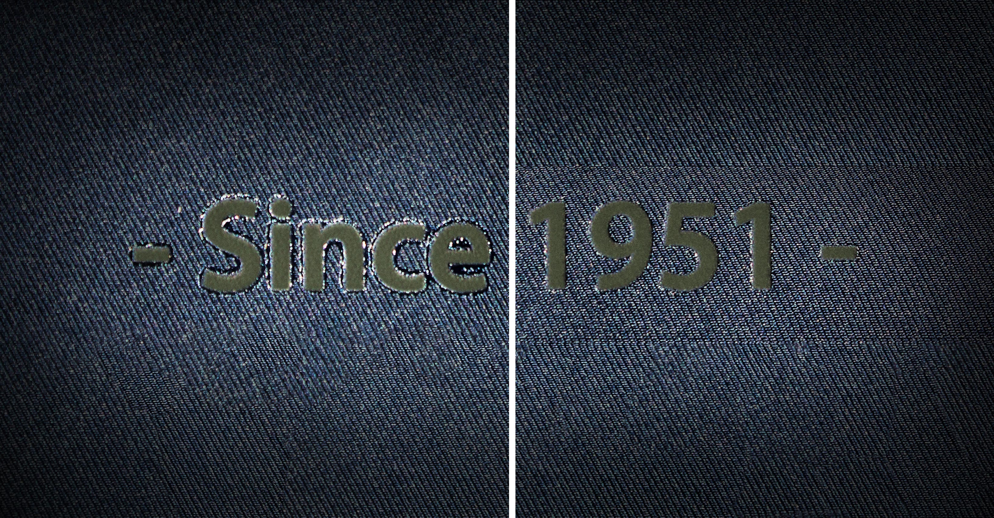 Problemet blir extra tydligt när du applicerar en mörk transfer på mörka plagg och textiler, något vi kallar ton i ton. Då vi har ett utåtfallande lim skapas en hinna utanför själva loggan, en limkant, som syns när både material och tryck är mörkt. Om du inte kan välja en annan färg på transfertrycket har du som alternativ att lägga till en vit outline eller en vit platta – och på så sätt syns inte limmet. En annan lösning är en metod vi kallar för ”läskning av limkant”.